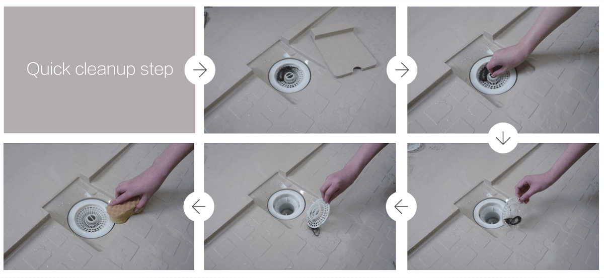 Es desmontable y está diseñado con una estructura de drenaje tipo hidromasaje. El filtro triple puede evitar la obstrucción del cabello y facilitar la limpieza.