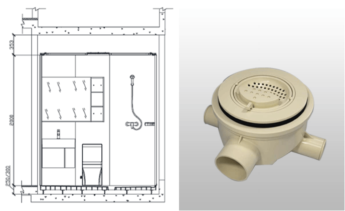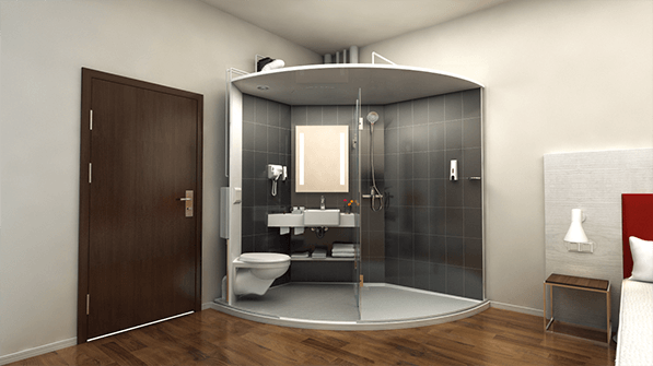 Usando construcción seca y "bloques de construcción" instalación, se puede instalar un baño completo en 4 horas.